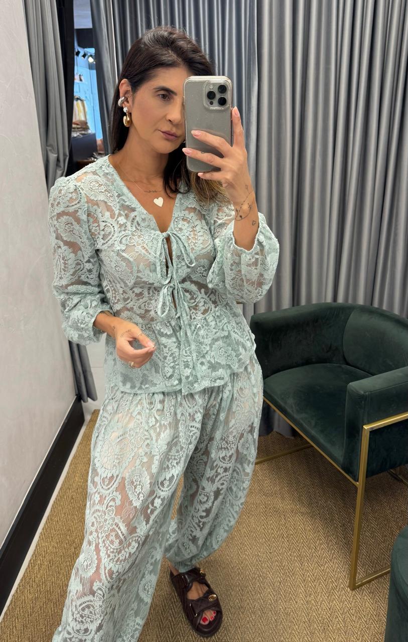 BATA RENDA - DECOTE CARECA COM ABERTURA FRONTAL COM TIRAS DA PROPRIA RENDA PARA AMARRAÇÃO, MANGA LONGA COM ELASTICO NO PUNHO