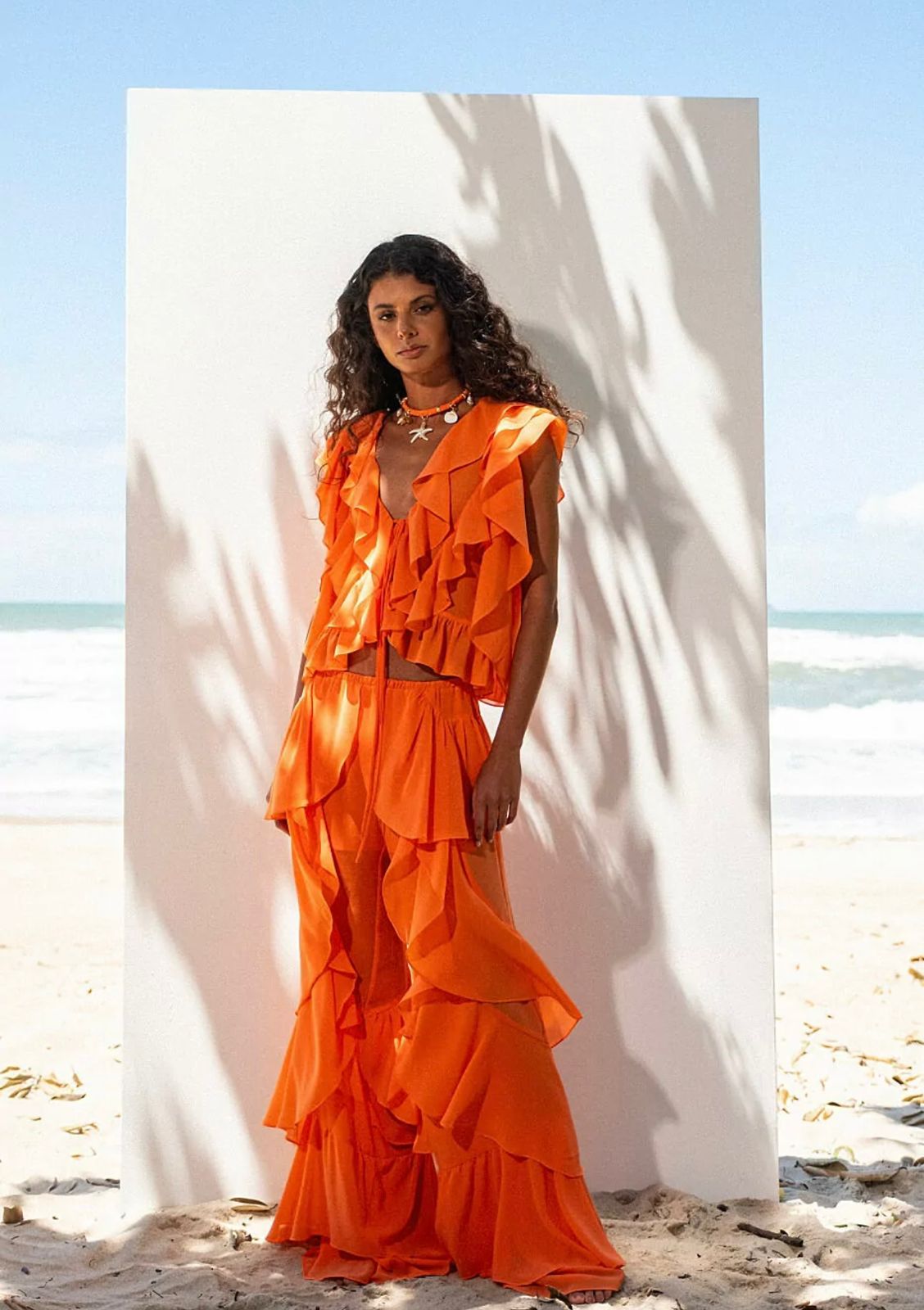 A Blusa Babados é a definição de romance moderno no guarda-roupa feminino. Esta não é apenas uma blusa, é uma peça-chave que eleva instantaneamente qualquer look, transitando do casual chic ao elegante com facilidade. Os detalhes em jabô cuidadosamente aplicados criam movimento e volume sofisticado, enquanto a amarração frontal permite que você personalize o decote. Perfeita para quem busca um item único que já vem com o acessório ideal.