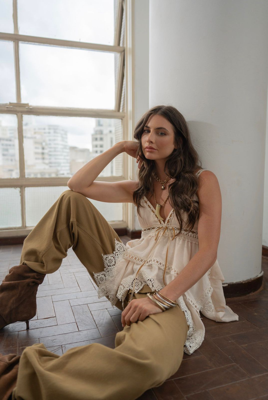 BLUSA SOLIEL - ALÇA COM AVIEMNTO EM VELUDO, COM REGULAGEM DE ALTURA, CFOM RECORTE ABAIXO DO BUSTO, COM ASSIMETRIA NA BARRA TODA EM BICOS COM DETALHES EM AVIAMENTO NAS PONTAS, COM ELASTEX E ZIPER NA PARTE DE TRAS