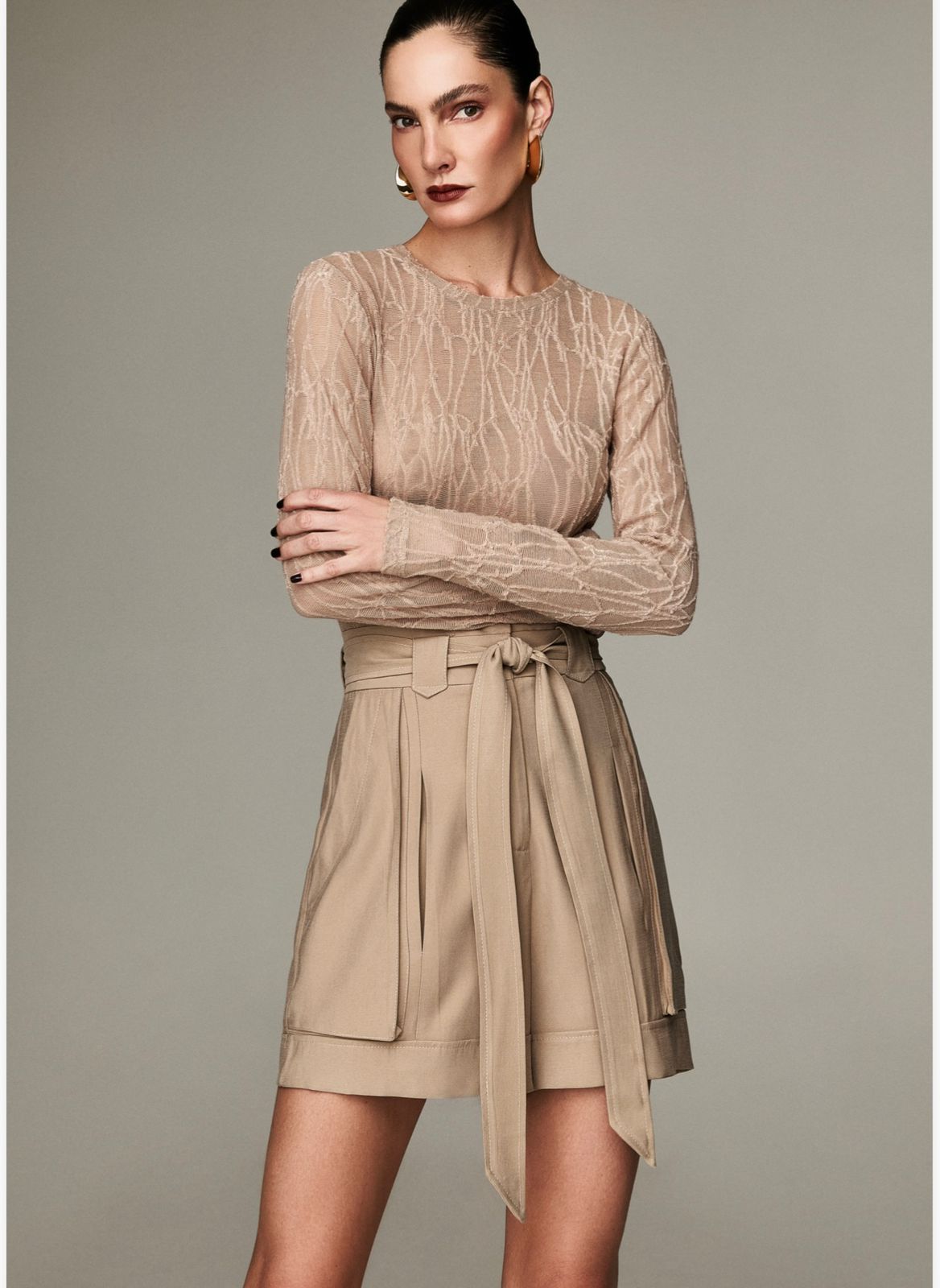 BLUSA TEXTURIZADA - EM MALHA TEXTURIZADA DEVORE,GOLA CARECA, MANGA LONGA