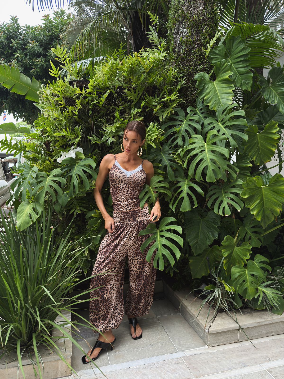 CALÇA ALADIM LUIZA - COS LARGO, COM ELASTICO NA BARRA BOLSO FACA, ESTAMPA ANIMAL PRINT