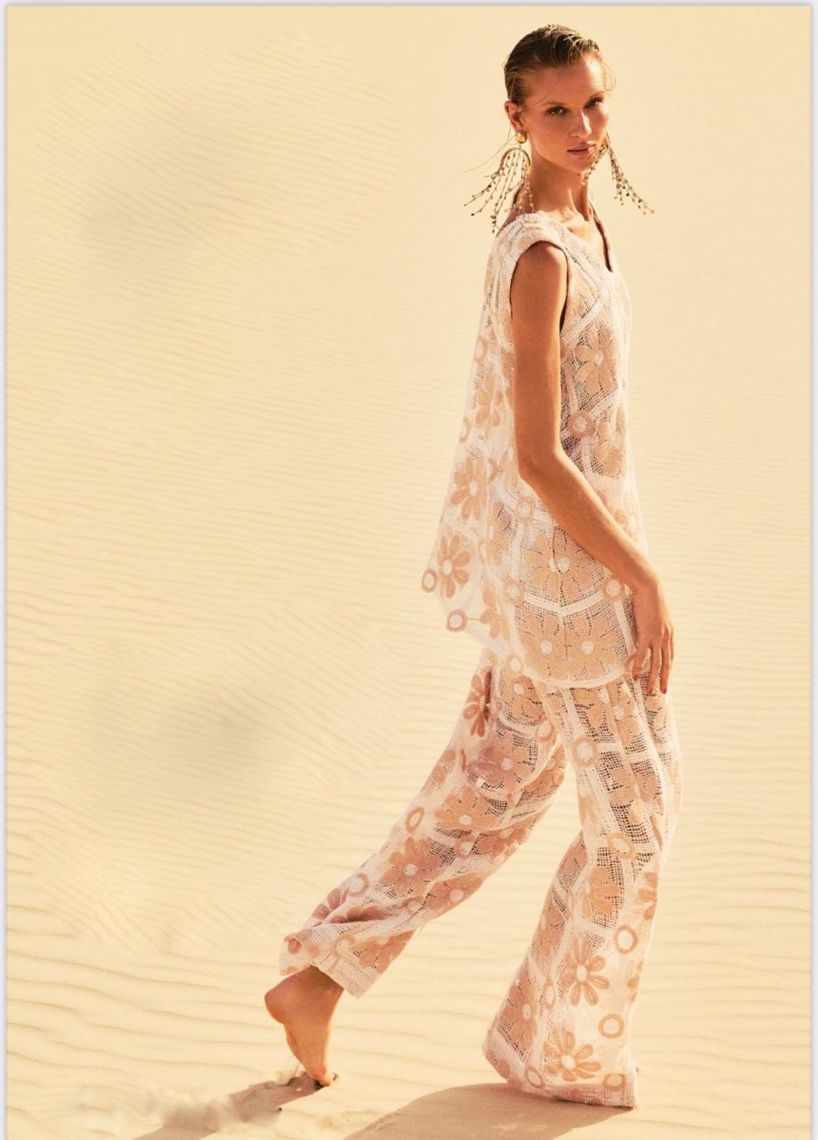 CALÇA MARANHÃO - EM CROCHE COS COM BOTÃO E ZIPER PARA FECHAMENTO NA LATERAL, COM FORRO DE SHORTS, BARRA RETA
