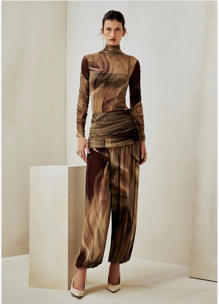 CALÇA TULE DRAPEADA - COS LARGO FRANZIDO NA LATERAL, MODELAGEM ALADIM COM DORRO DE SHORTS