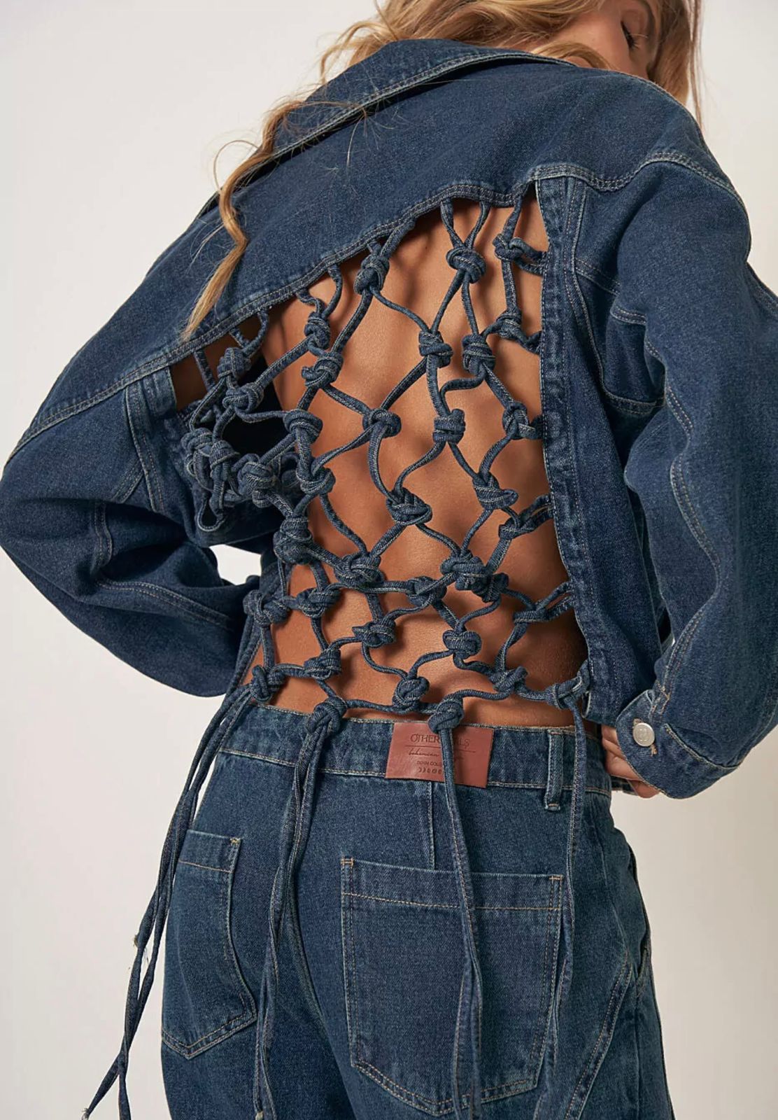 JAQUETA MACRAMÊ: MANGA LONGA PUNHO COM BOTÃO, FECHAMENTO EM ZIPER, MODELAGEM OVERSIZED BOLSOS NA LATERAIS, COSTAS COM ABERTURA E TIRAS DO MESMO TECIDO EM PONTOS DE MACRAMÊ.