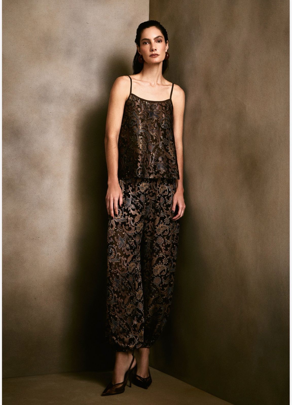 REGATA DEVORÊ - EM DEVORE, ESTAMPA EM FOLHAFEM COM ALÇA DE REGULAGEM DE ALTURA,
