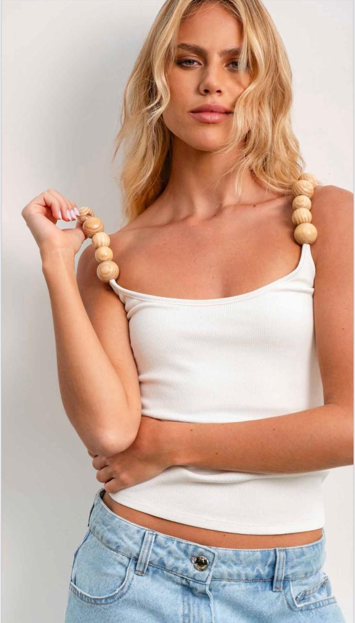 REGATA SAGE - CANELADA DUPLA ATE A ALTURA DOS SEIOS, ALÇA COM ESFERAS EM MADEIRA