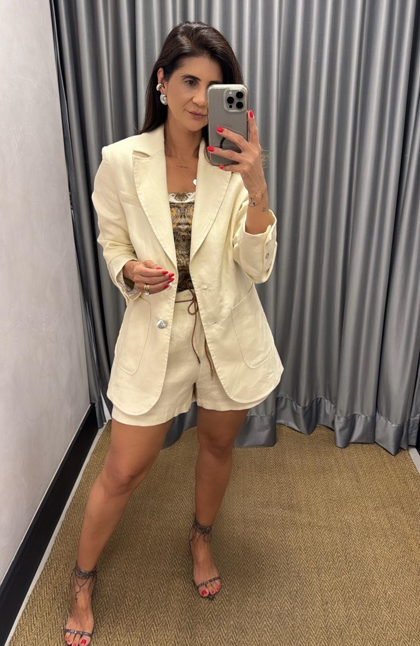 SHORTS LINHO CRIS - COS COM PASSANTE FECHAMENTO EM ZIPER NA LATERAL, PREGA FRONTAL, BOLSO FACA, FORRADO