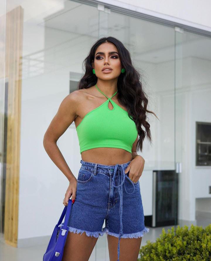 SHORTS VALENTINA: CINTURA ALTA MODELAGEM MOM, CÓS COM AMARRAÇÃO, PASSANTE FECHAMENTO EM BOTÃO E BOLSOS NA PARTE FRONTAL, BARRA DESFIADA, BOLSOS NA PARTE DE TRÁS.